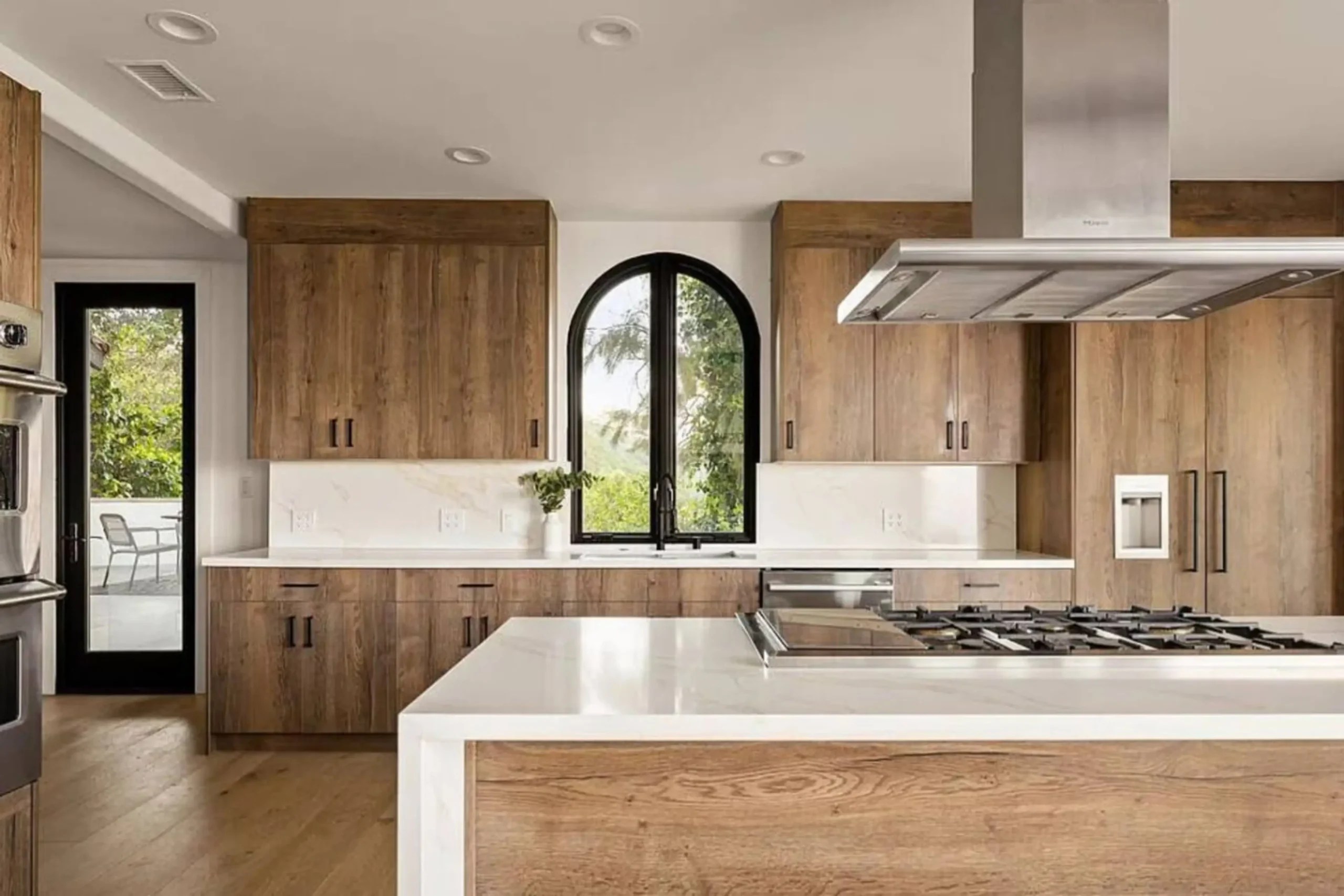 For guests or extended stays, a beautifully finished, fully self-contained guesthouse sits above the garage. This sophisticated ADU includes a private entrance, full kitchen, spa-style bathroom, and its own sun-soaked terrace—ideal for friends, family, or as a high-end rental suite.