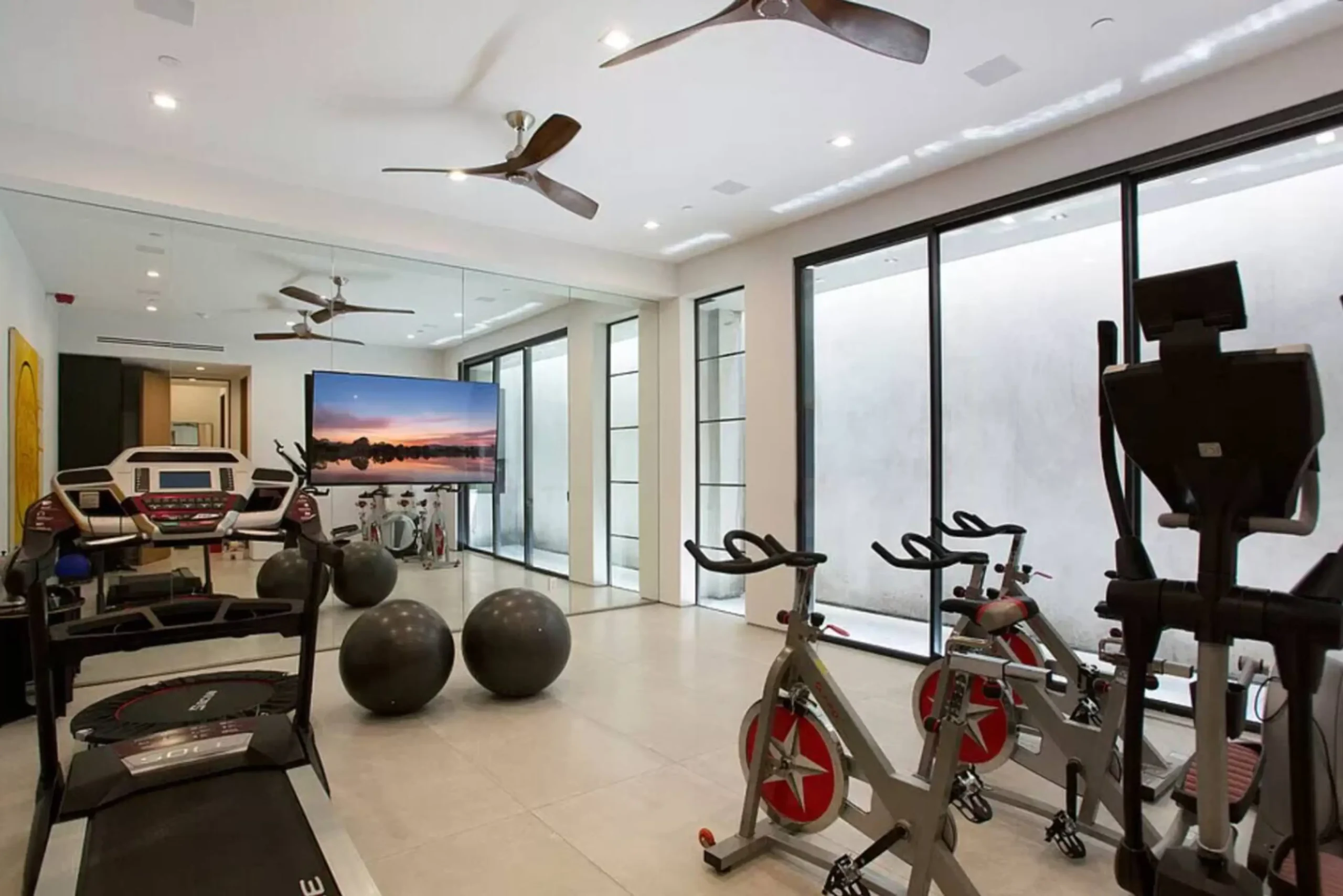 Enjoy your own private movie theatre for cinematic nights in, or keep up with your fitness routine in the fully equipped home gym. Step outside to the resort-style pool and jacuzzi, surrounded by sun loungers and lush landscaping, offering a serene escape in the heart of Beverly Hills. Every amenity is designed to elevate your stay, ensuring both relaxation and recreation are just steps away.