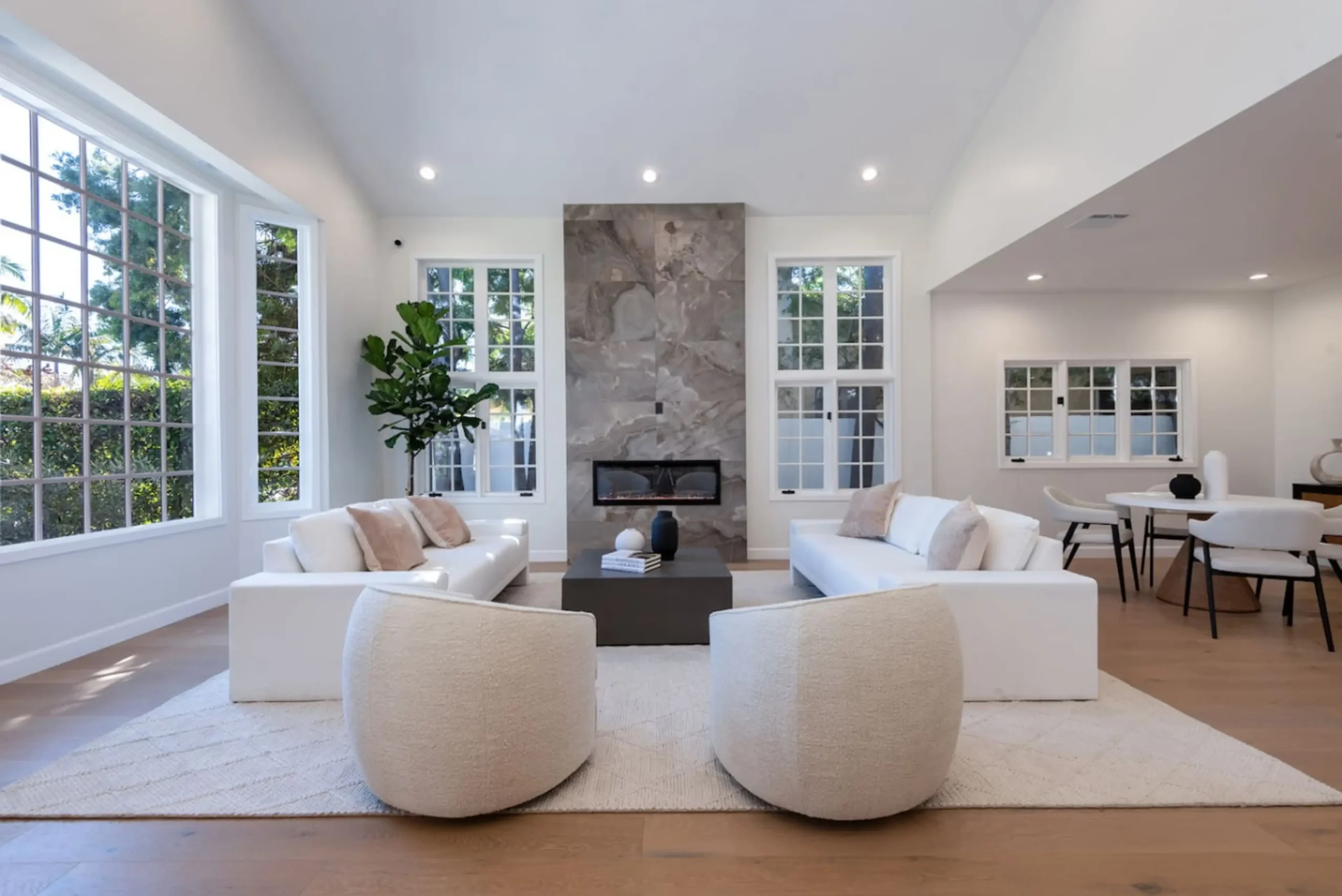 The gourmet kitchen is a chef’s dream, featuring high-end appliances, generous counter space, and everything needed to craft delicious meals. Dine in style at the elegant dining table, or take your meals outside to enjoy the beautiful California weather in the outdoor dining area.