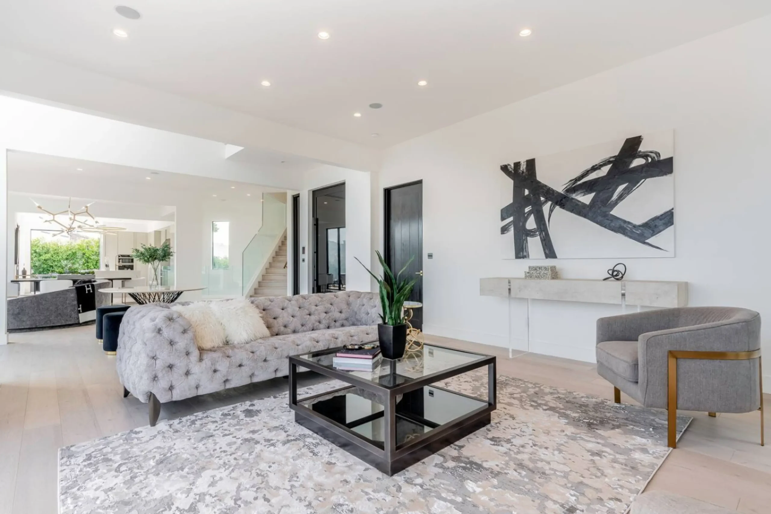 Elegantly appointed to host up to 8 guests, each bedroom features its own ensuite bathroom, ensuring privacy and comfort for all. The expansive living spaces exude a contemporary charm, creating an atmosphere of sophistication and style that complements the affluent surroundings of Beverly Hills.