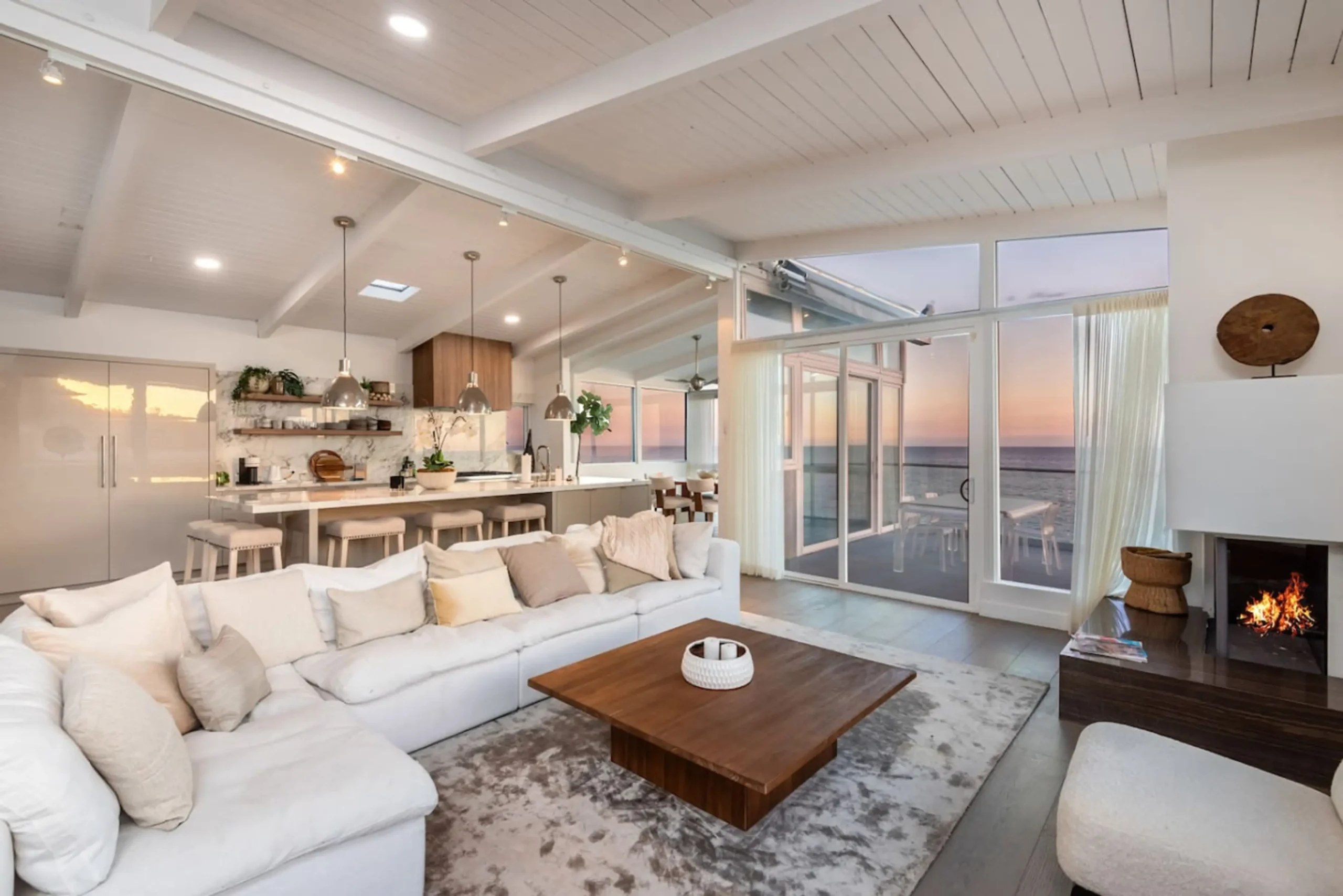 Welcome to your dream coastal escape—an elegant and sun-soaked retreat located directly on the Pacific Ocean in iconic Malibu. This stunning 3-bedroom, 3-bathroom oceanfront residence is designed for ultimate relaxation, offering uninterrupted panoramic views, high-end amenities, and effortless beachside living. Sleeps 6 guests in total comfort—all bedrooms feature plush king-size beds.