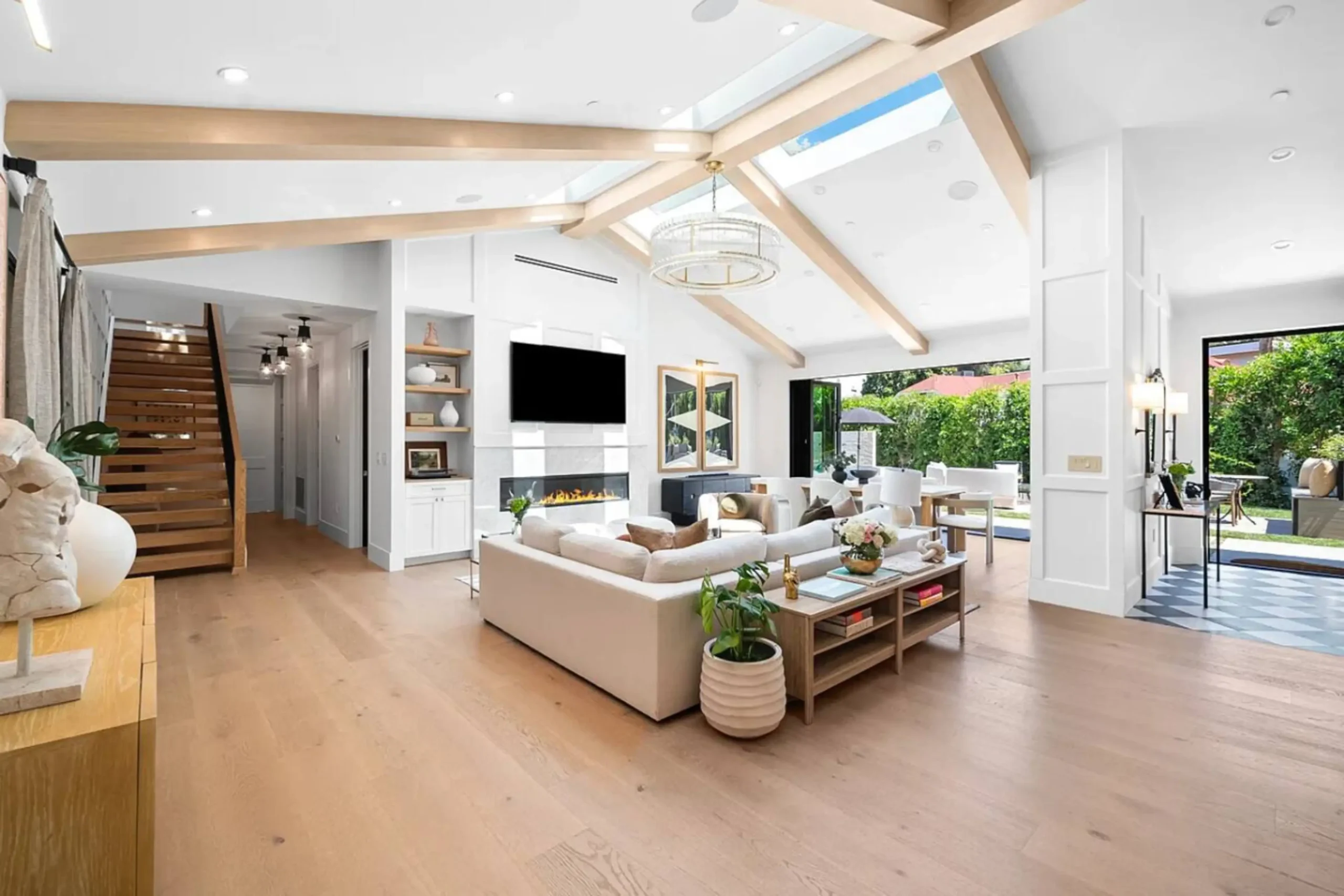 Step inside to an expansive open-concept living area with soaring high ceilings, white oak floors, and meticulously crafted Italian cabinetry. The state-of-the-art kitchen features porcelain countertops, high-end appliances, and elegant finishes, making it a chef’s dream while seamlessly flowing into the spacious living and dining areas. Gather around the stunning marble fireplace, a centerpiece of warmth and comfort, ideal for sharing stories and creating lasting memories.