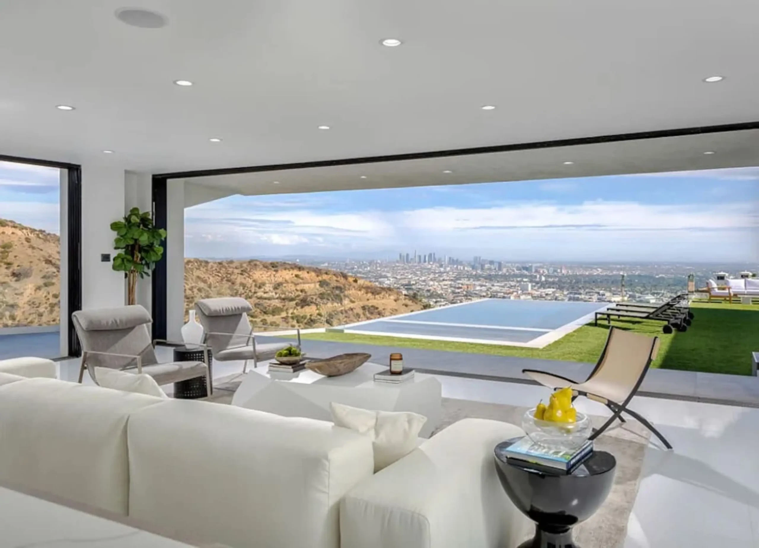 This smart home is fully automated for modern convenience and also features a spacious two-car garage. With its iconic location, world-class amenities, and sweeping vistas, this one-of-a-kind residence captures the essence of the Hollywood Hills lifestyle.