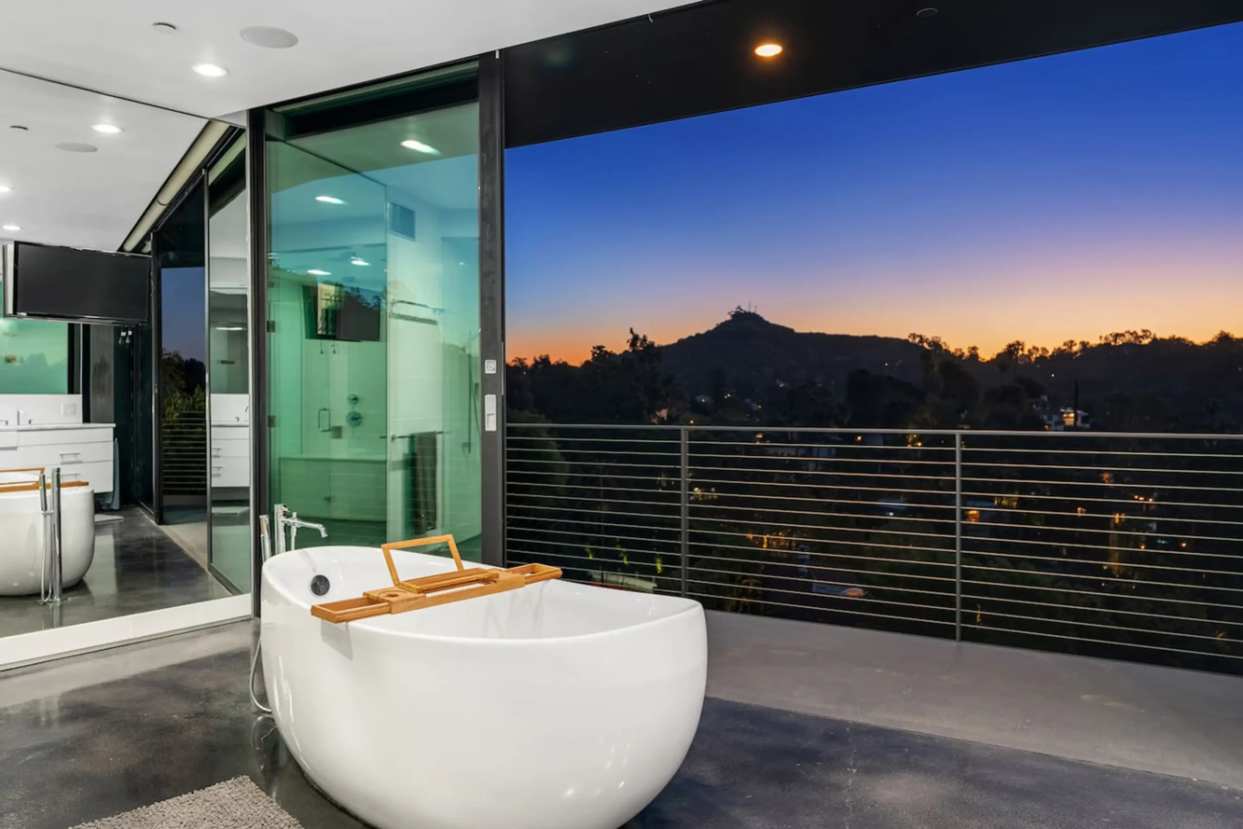 Experience unparalleled luxury in this architectural masterpiece, situated in one of LA’s most prestigious neighborhoods. This high-end, full-glass mansion seamlessly blends modern elegance with comfort, offering breathtaking panoramic views of the Hollywood Hills. Whether you’re planning a group getaway or seeking a private sanctuary, this 4-bedroom, 6-bathroom home ensures an unforgettable stay—an oasis of sophistication and indulgence.