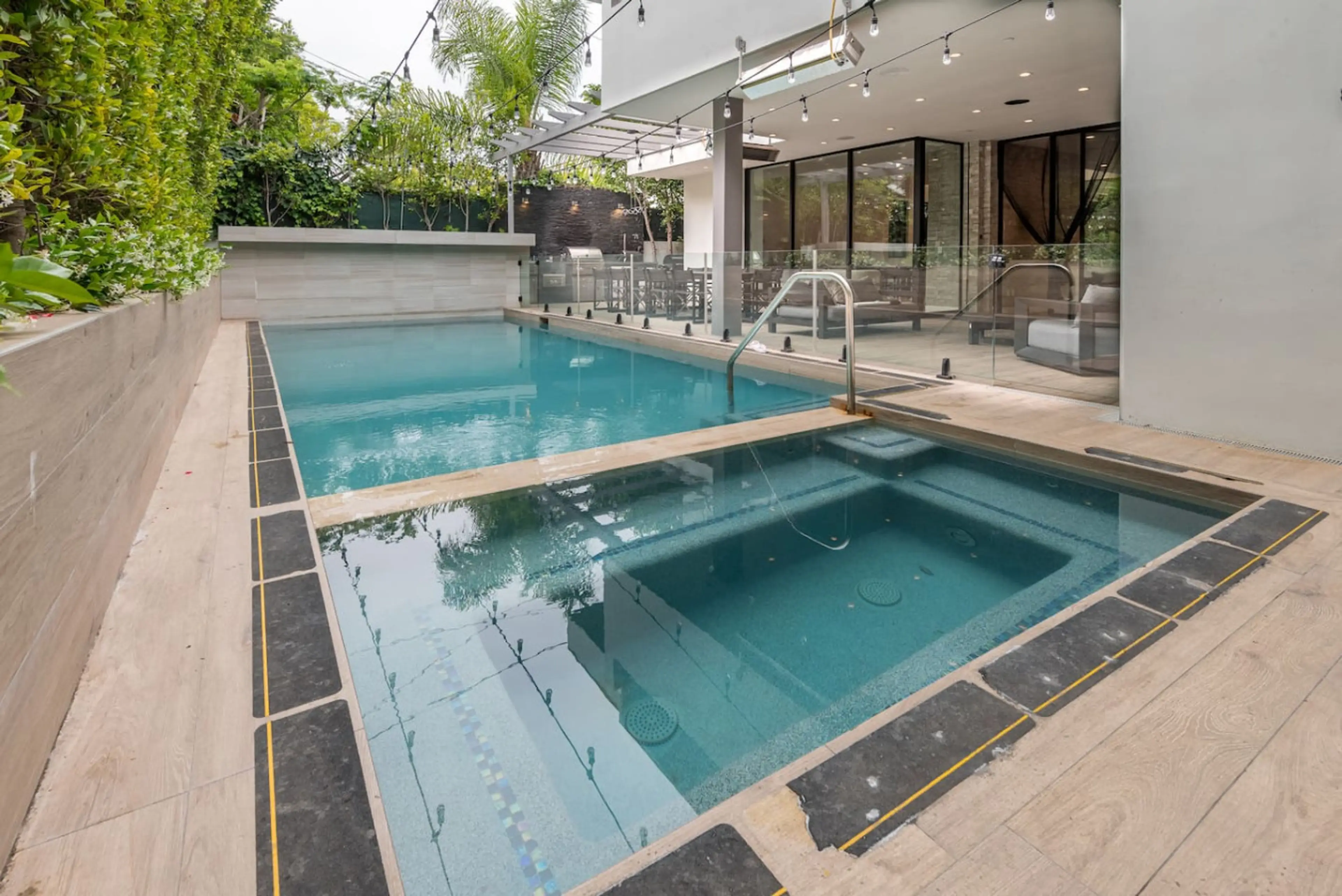 Experience the ultimate in luxury living in this stunning modern 5-bedroom, 6.5-bathroom gated mansion featuring every luxury amenity imaginable — a private pool, jacuzzi, rooftop deck with breathtaking 360° views of the LA skyline, BBQ grill, and wood-fired pizza oven. Perfectly designed for comfor...